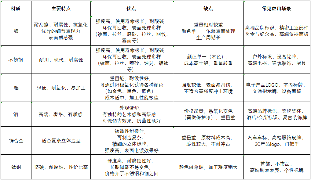 主流金屬標牌材質(zhì)對比一覽表