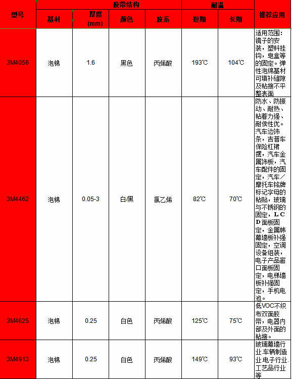(以上3M膠帶依次為:3M4056、3M4462、3M4625、3M4913相關(guān)介紹)